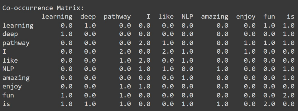 - Output: Finally, the code prints the resulting table, providing a clear, human-readable representation of the Bag of Words features derived from the text.