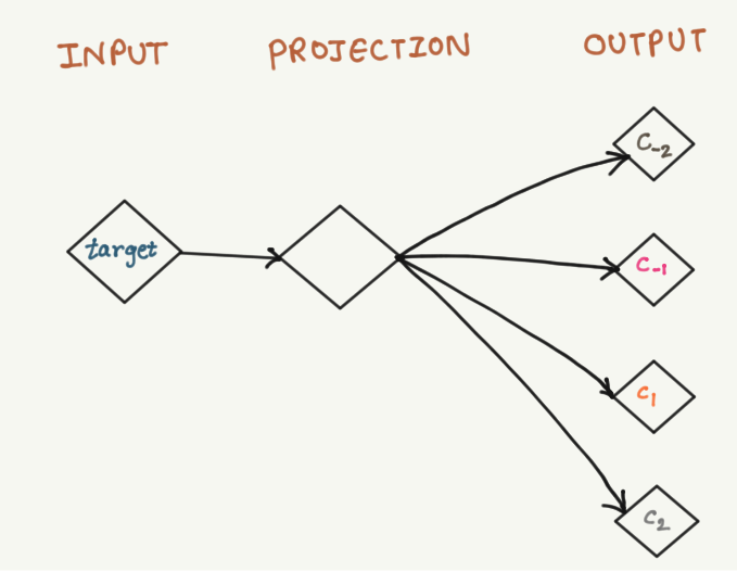 - Skip-gram: target word is known and the model tries to guess the context using it