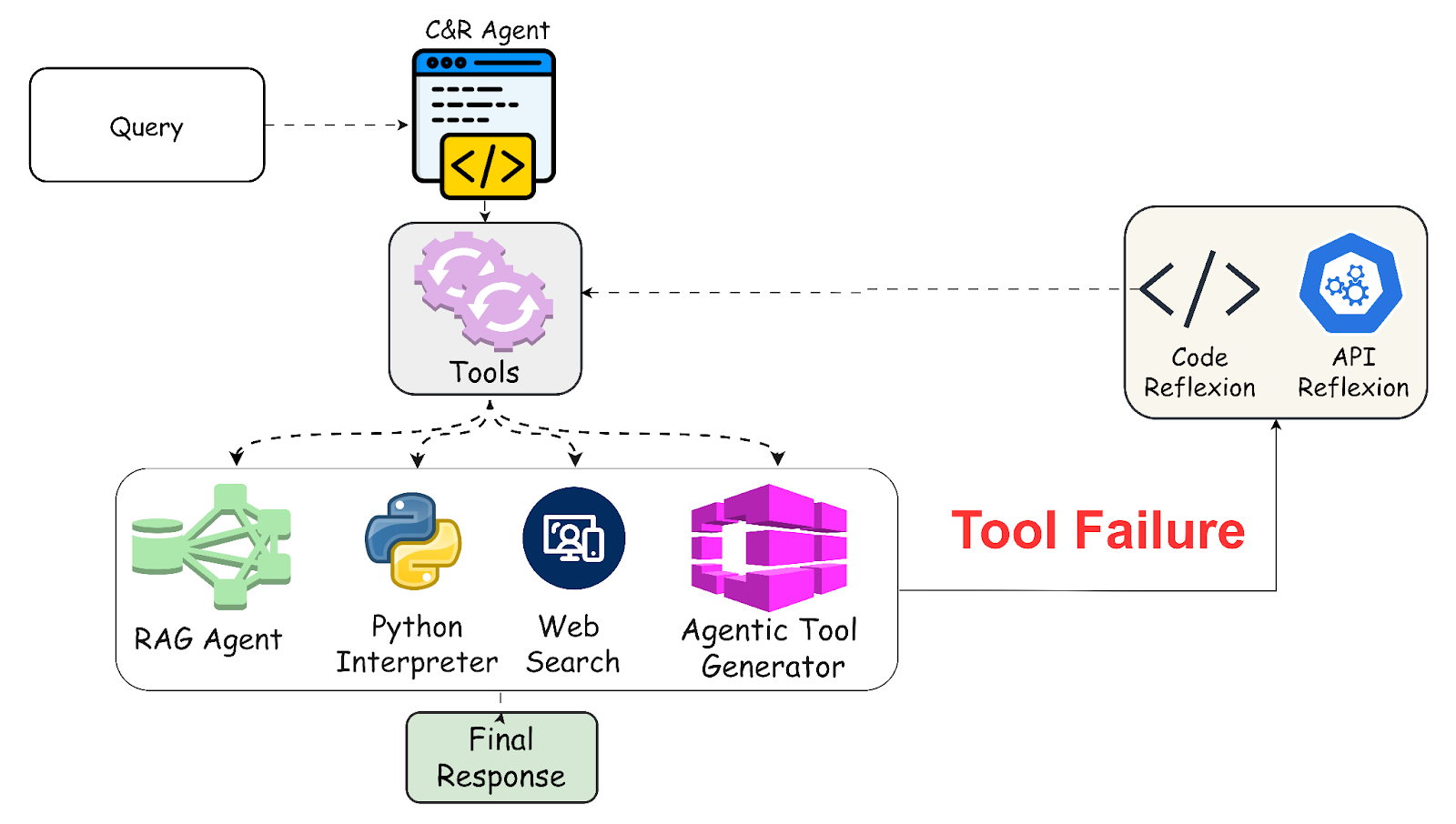 - Tool-Specific Tasks: The C&R Agent utilizes tools for any tool-specific tasks based on the RAG Agent’s response and user query