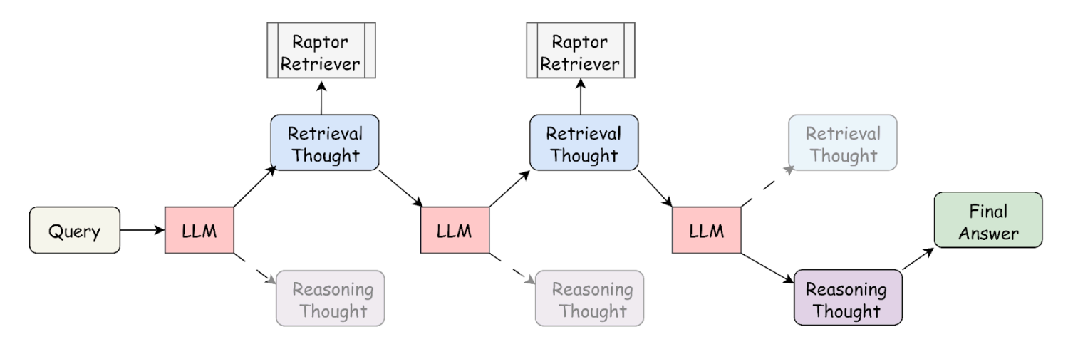 - Interleaving Process: This cycle of retrieval and reasoning continues iteratively, refining the knowledge step by step