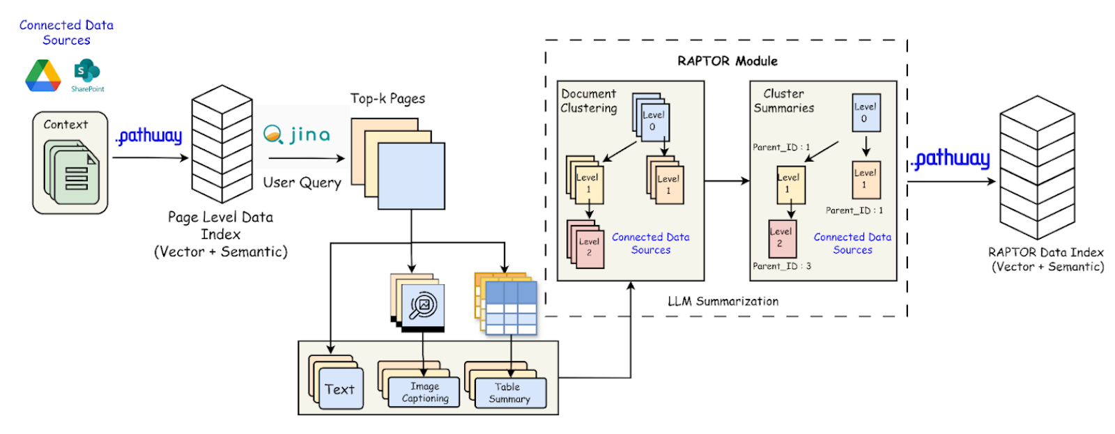 - Integration with Pathway: Integration with Pathway requires metadata-level filtering to enable structured retrieval across hierarchical clusters