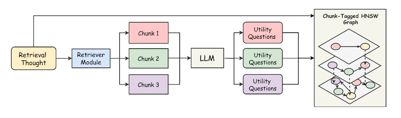 This enables efficient retrieval by checking the query bank for similar queries and directly accessing relevant chunks if a match is found. HNSW’s multi-layered graph structure supports real-time updates, making it well-suited for dynamic RAG.